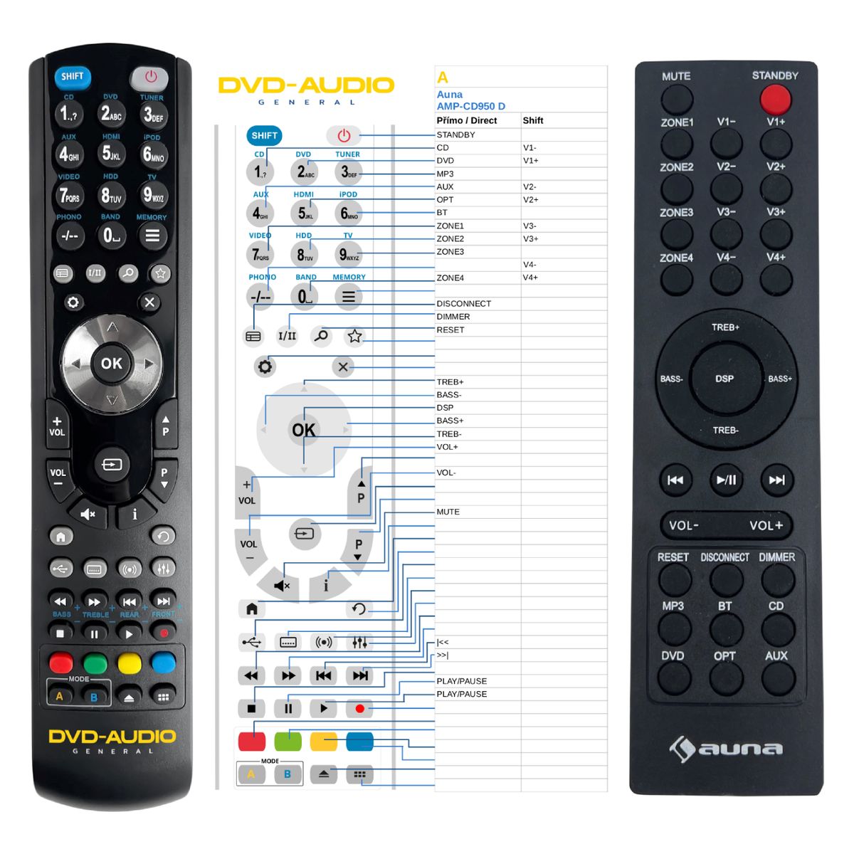 AUNA AMP-CD950DG - compatible General-branded remote control