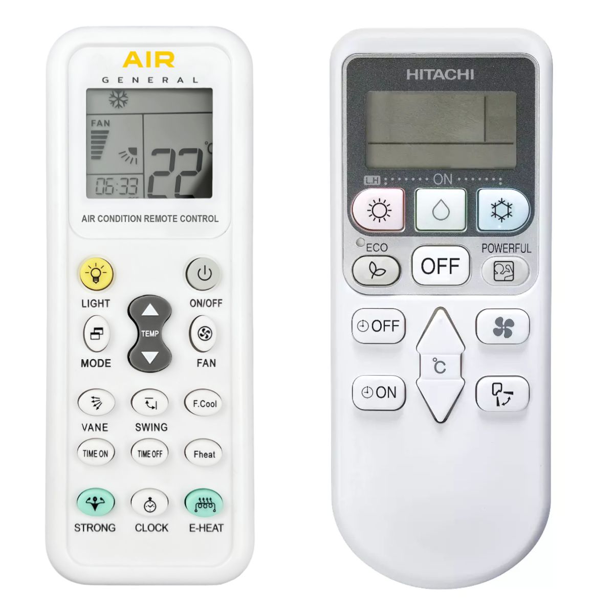 This remote control is available on specialized AIR CONDITION remote control General AIR with display (shown on the left), which was made specifically for air conditioners HITACHI. We guarantee that the remote control will perform all the functions of the original RC.