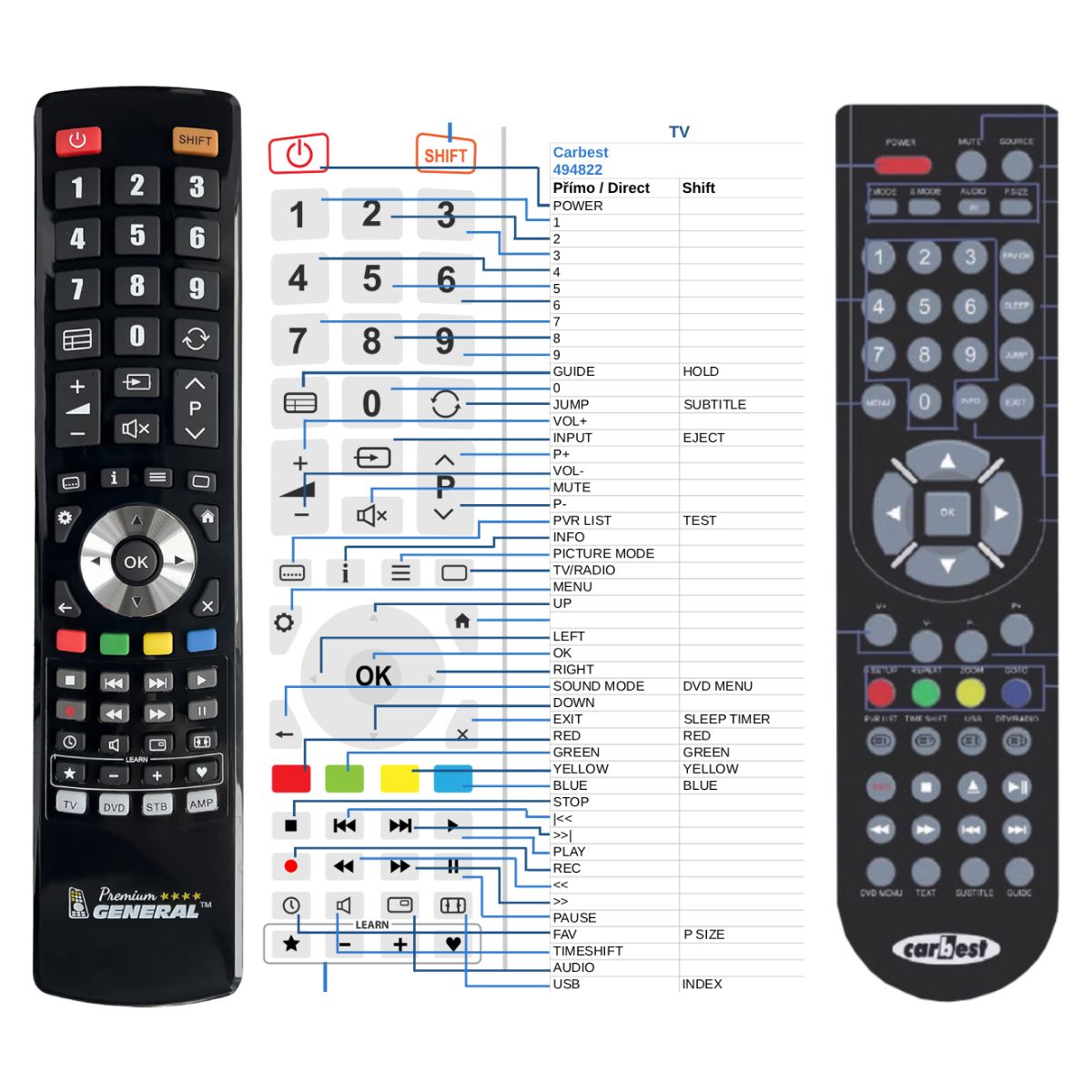 This remote control is available on branded remote control General Premium (shown on the left). We guarantee that the remote control will perform all the functions of the original RC.