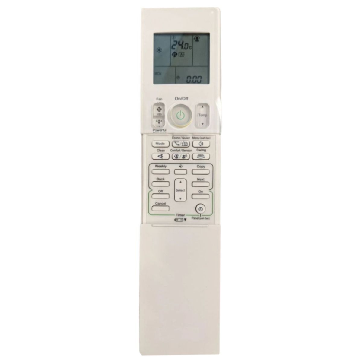 - Performs exactly these functions of the original RC: ON/OFF, FAN 1,2,3, Auto, Swing ON/OFF and all the modes: AUTO, COOL, HEAT, FAN, DEHUM.