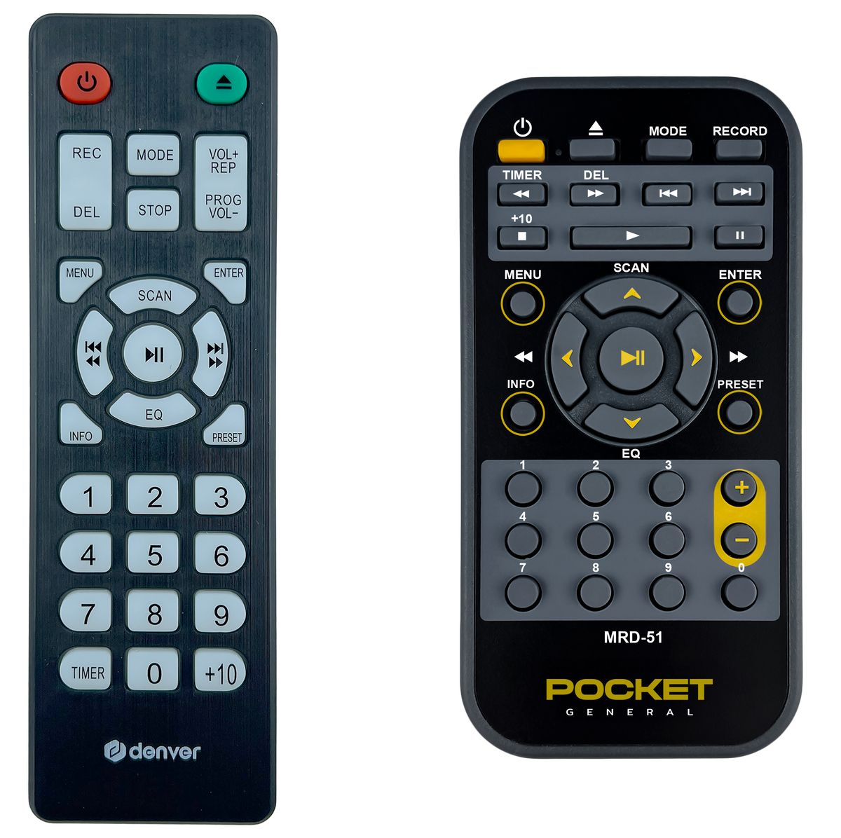 The DENVER MRD-51 (MRD51) remote control is a 1:1 duplicate of the original.