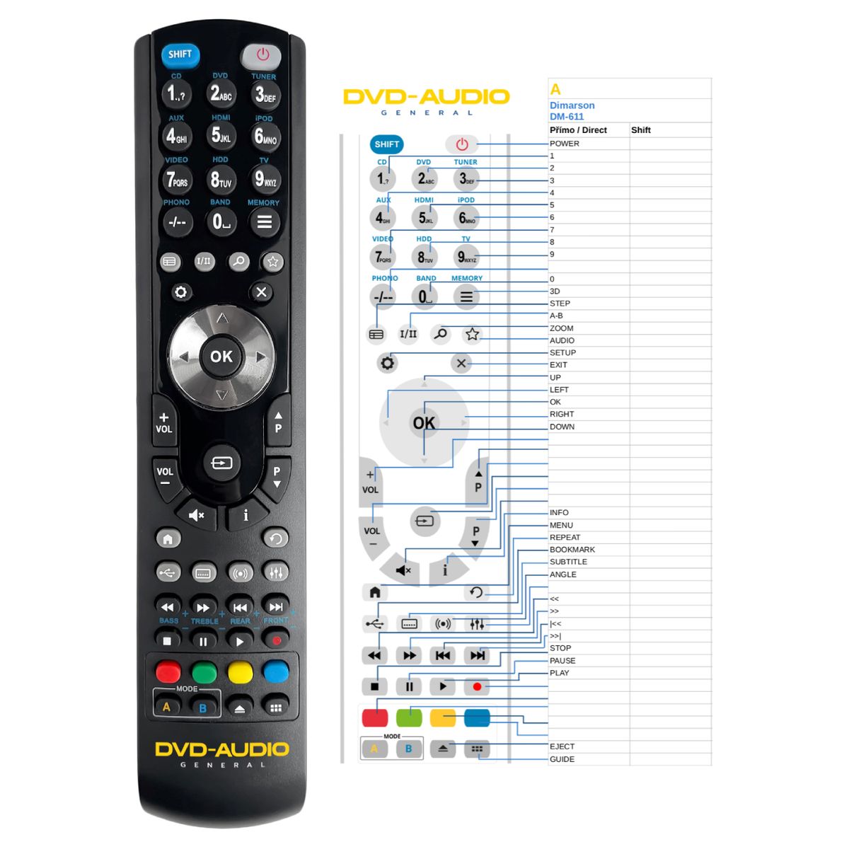 Replacement remote control DIMARSON DM-611 (DM611) - 100% replacement 1:1 of the original remote control.
