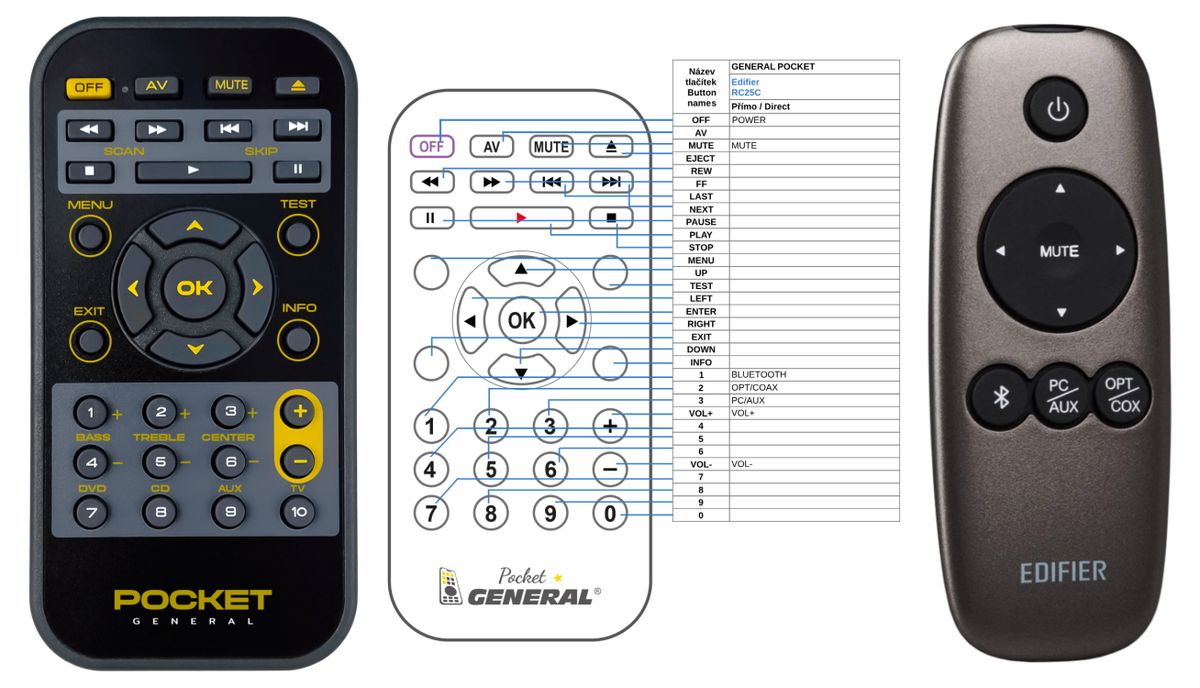 This remote control is available on branded remote control General POCKET (shown on the left). We guarantee that the remote control will perform all the functions of the original RC.