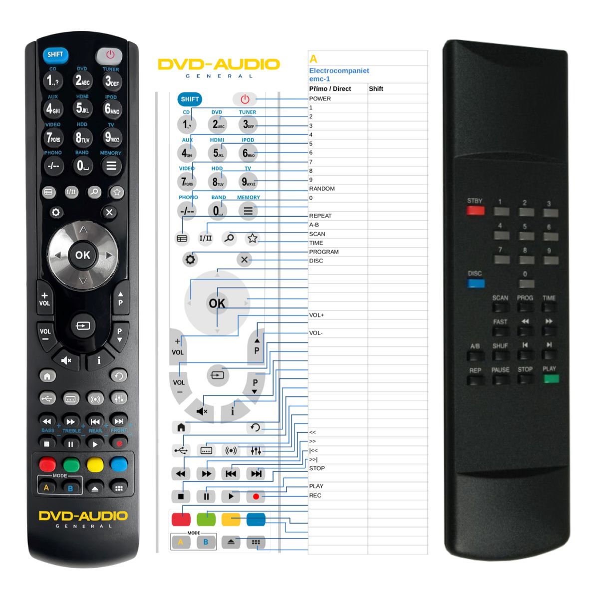 This remote control is available on branded remote control General DVD/AUDIO (shown on the left). We guarantee that the remote control will perform all the functions of the original RC.