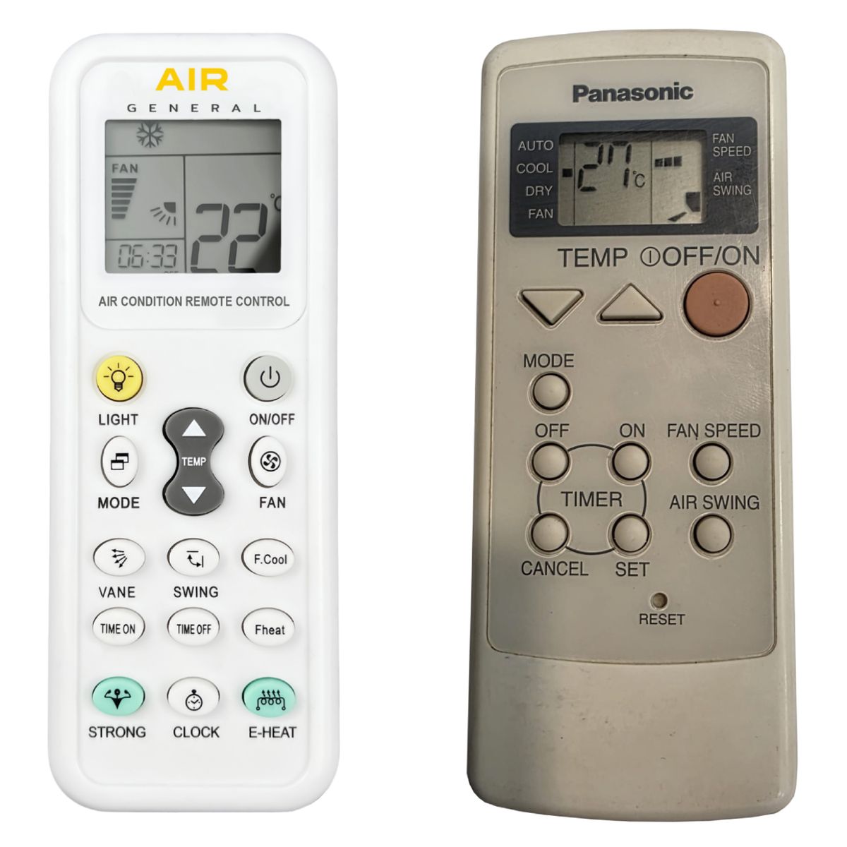 Este mando a distancia está disponible como un mando especializado para AIRE ACONDICIONADO General AIR con pantalla (se muestra a la izquierda). Garantizamos que el mando a distancia realizará todas las funciones del original mando a distancia.