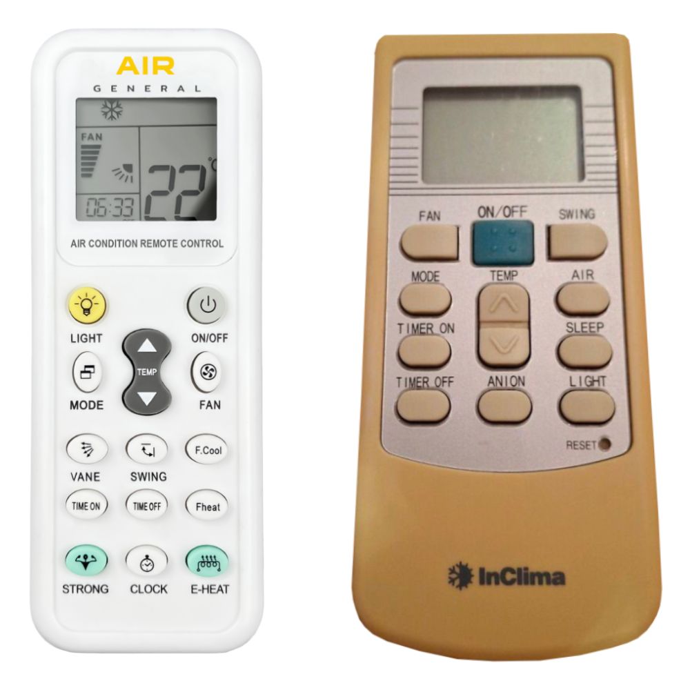 Este mando a distancia está disponible como un mando especializado para AIRE ACONDICIONADO General AIR con pantalla (se muestra a la izquierda). Garantizamos que el mando a distancia realizará todas las funciones del original mando a distancia.