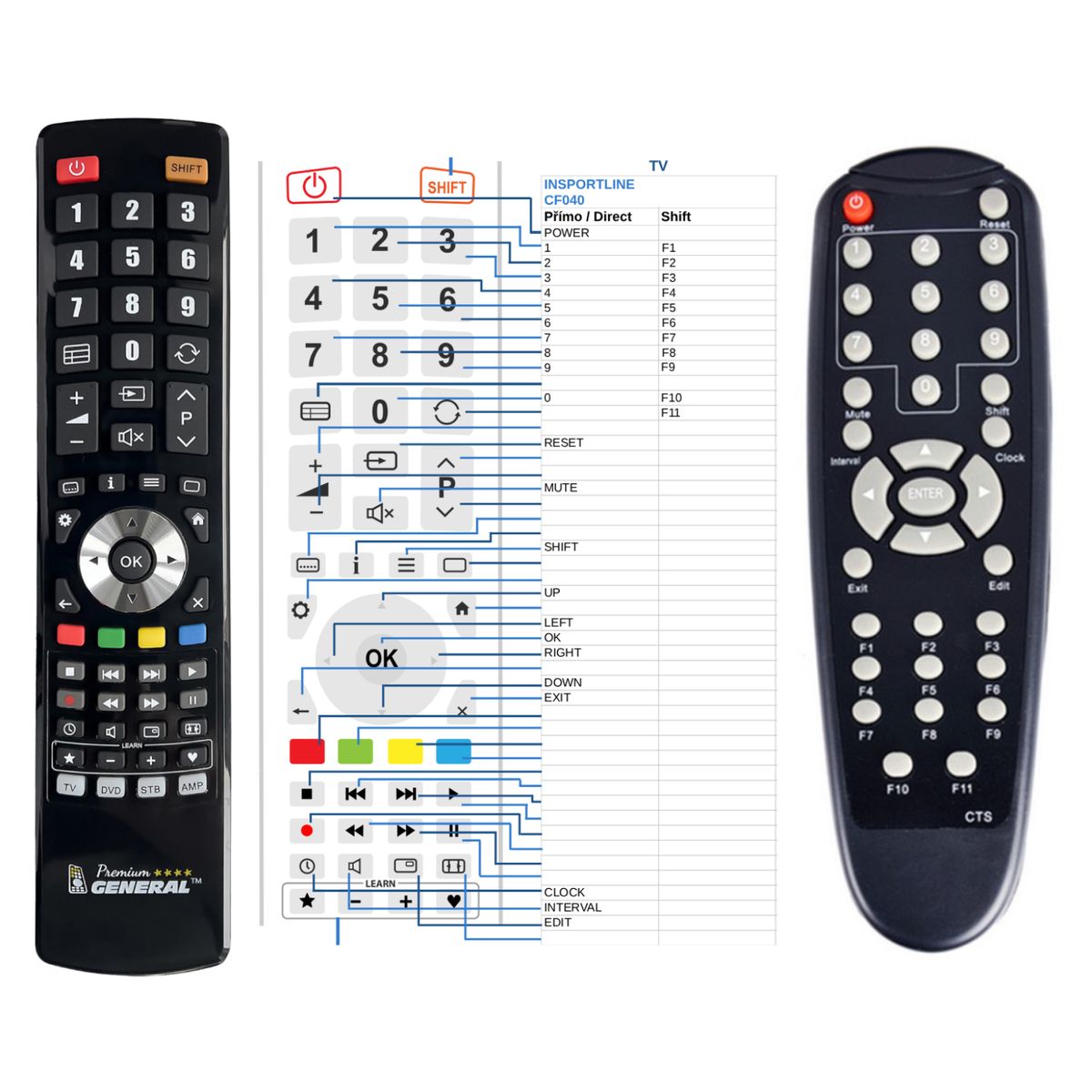 El mando a distancia se suministra en versión del mando a distancia de marca General Premium (se muestra a la izquierda). Garantizamos que el mando realizará todas las funciones del mando a distancia original.