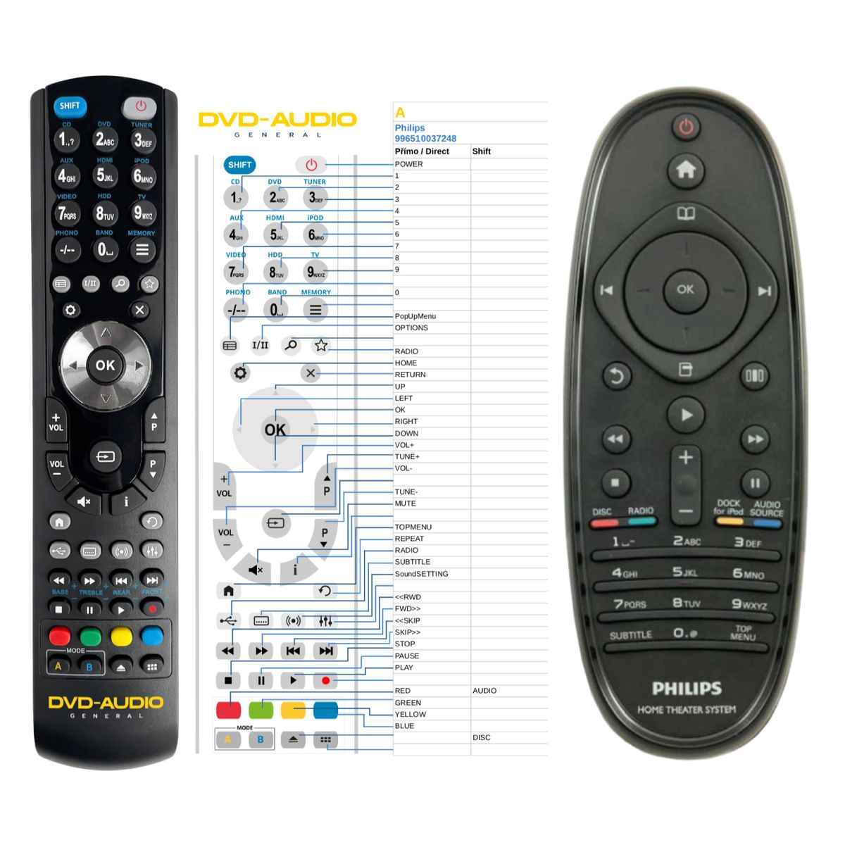 El mando a distancia se suministra en versión del mando a distancia de marca General DVD/AUDIO (se muestra a la izquierda). Garantizamos que el mando realizará todas las funciones del mando a distancia original.