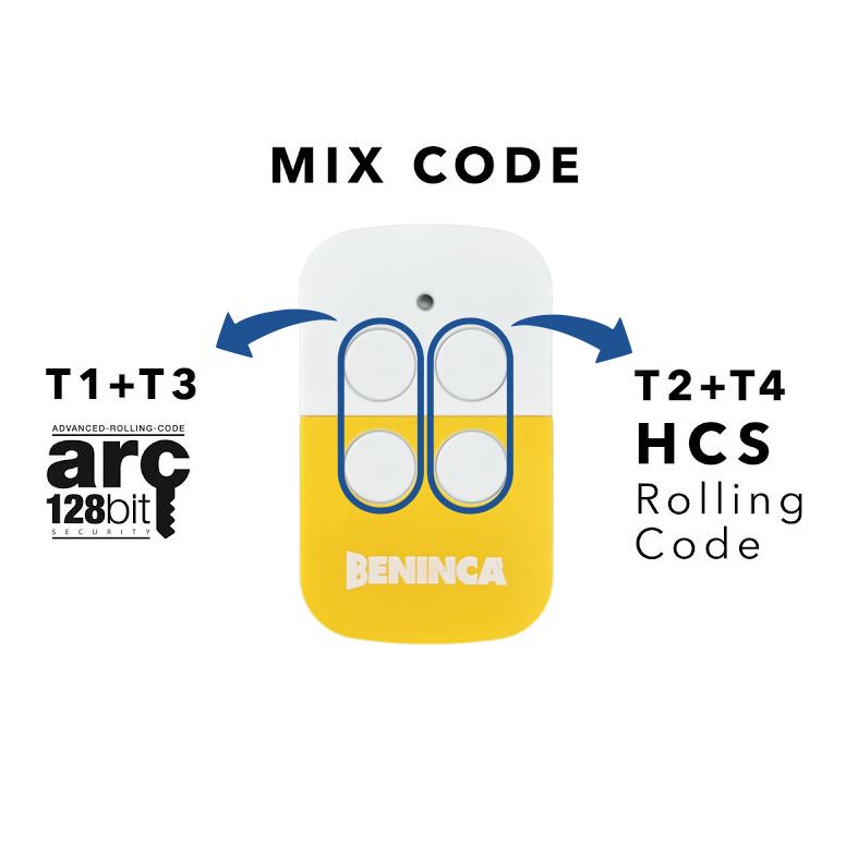 La serie VA de mandos a distancia (TO.GO VA y HAPPY VA) puede funcionar en modo HCS (Benincà Rolling-code) o ARC (Advanced Rolling-code). Esto permite utilizar los transmisores incluso en sistemas equipados con receptores HCS. De fábrica, el transmisor está configurado en modo ARC.