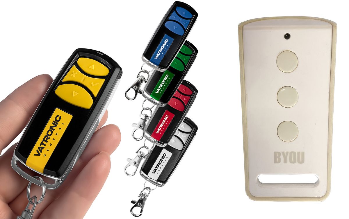 One RF General VATRONIC remote for everything: You can clone controls for another gate/garage door, blinds, remotely controlled sockets, and anything else you have at home with RF (radio) remote control on the other 3 buttons in a similar way. Thus, it can control up to 4 different devices/receivers. Receivers can be of different (any) brands and frequencies with both fixed and floating codes. General VATRONIC and General GATE are indeed the ONLY RF remote controls on the market that are truly so universal that you can program codes from various gate and door manufacturers into one remote. Supported frequency 280-870 MHz.