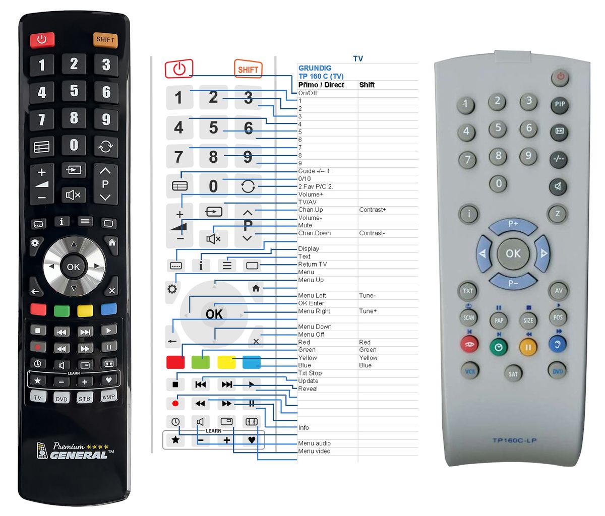Replacement remote control GRUNDIG TP160C - 100% replacement 1:1 of the original remote control.