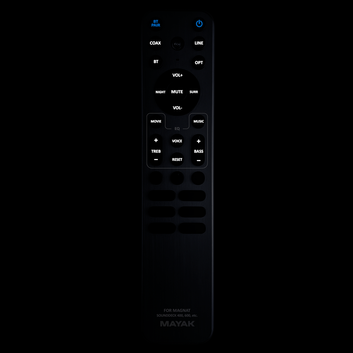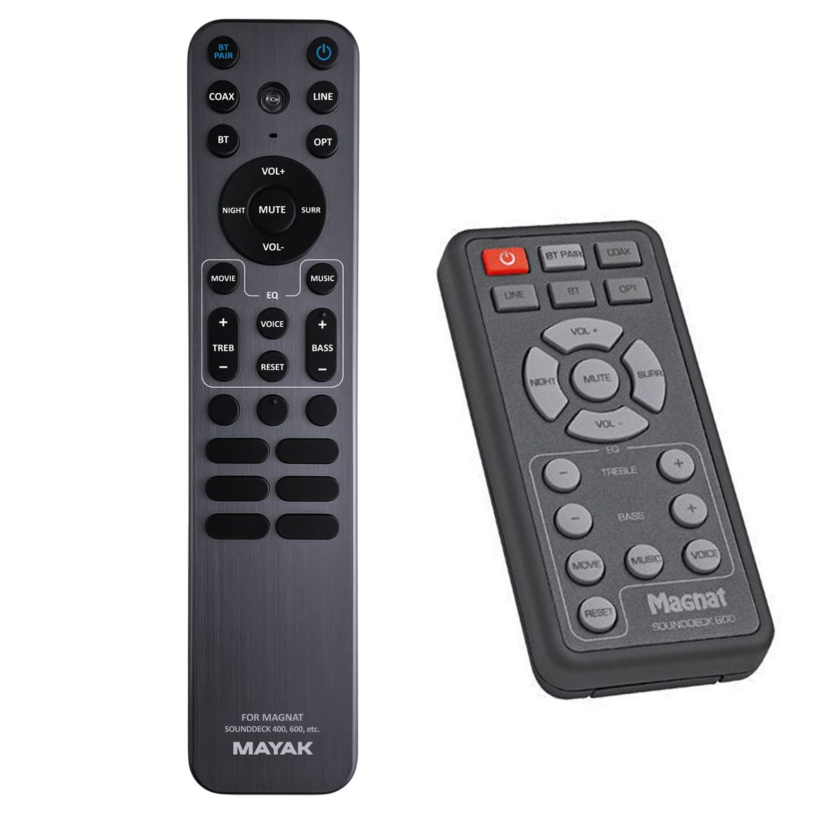 Perfect 1:1 copy designed and manufactured by our company – has all the functions of the original remote for these models of brand MAGNAT: SOUNDDECK 100, SOUNDDECK 400, SOUNDDECK 400 BTX, SOUNDDECK 600, SOUNDDECK 700. (There may not be listed all compatible models. If you are not sure, just tell us your device model (by online chat, email), we will promptly check, verify if compatible with your device. The verified compatibility is guaranteed by us.)