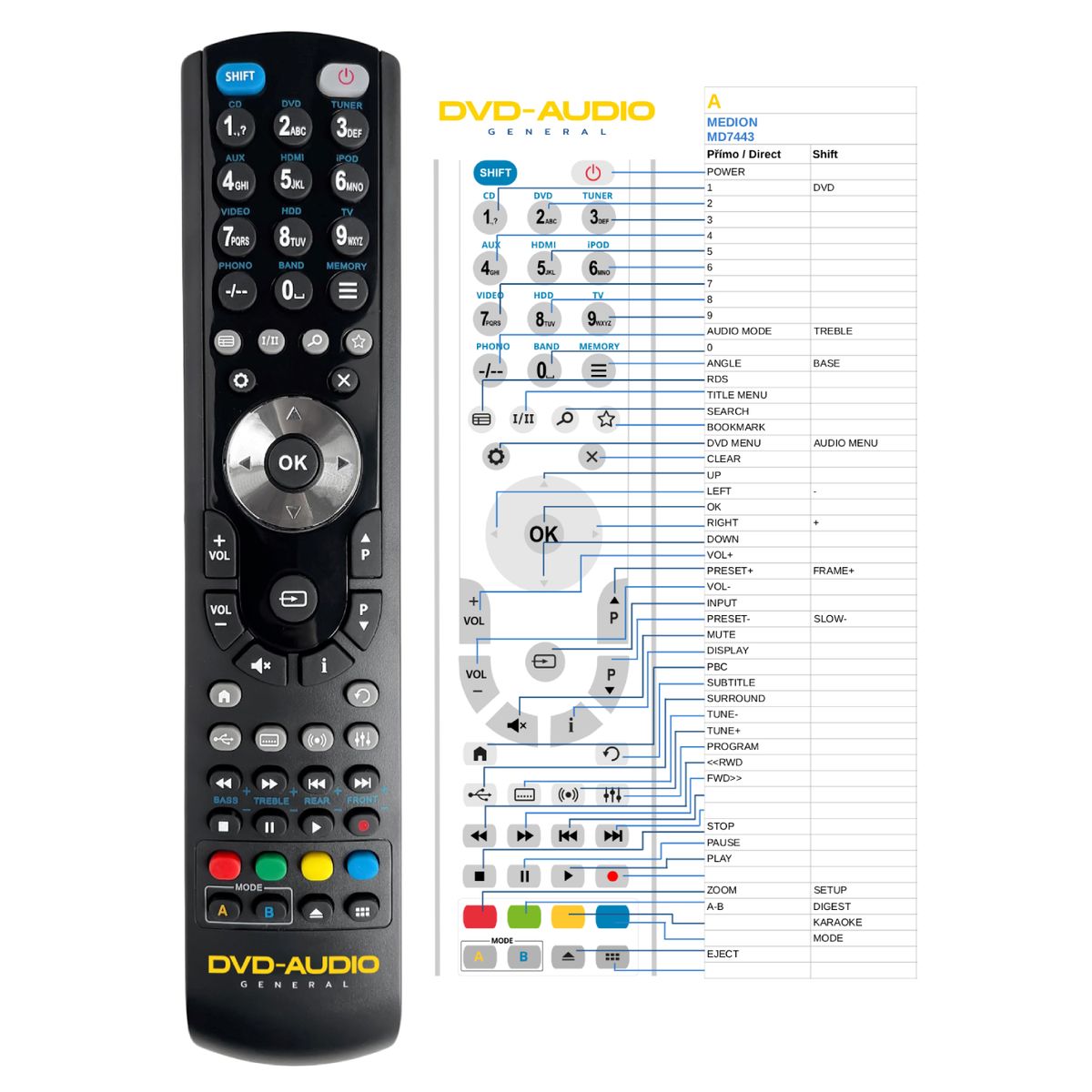 This remote control is available on branded remote control General DVD/AUDIO (shown on the left). We guarantee that the remote control will perform all the functions of the original RC.
