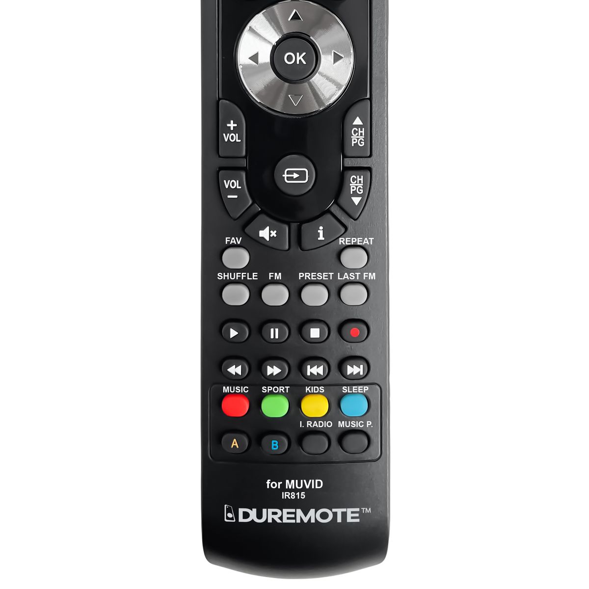 The MUVID IR-615, IR-815 (IR615, IR815) remote control is a 1:1 duplicate of the original.