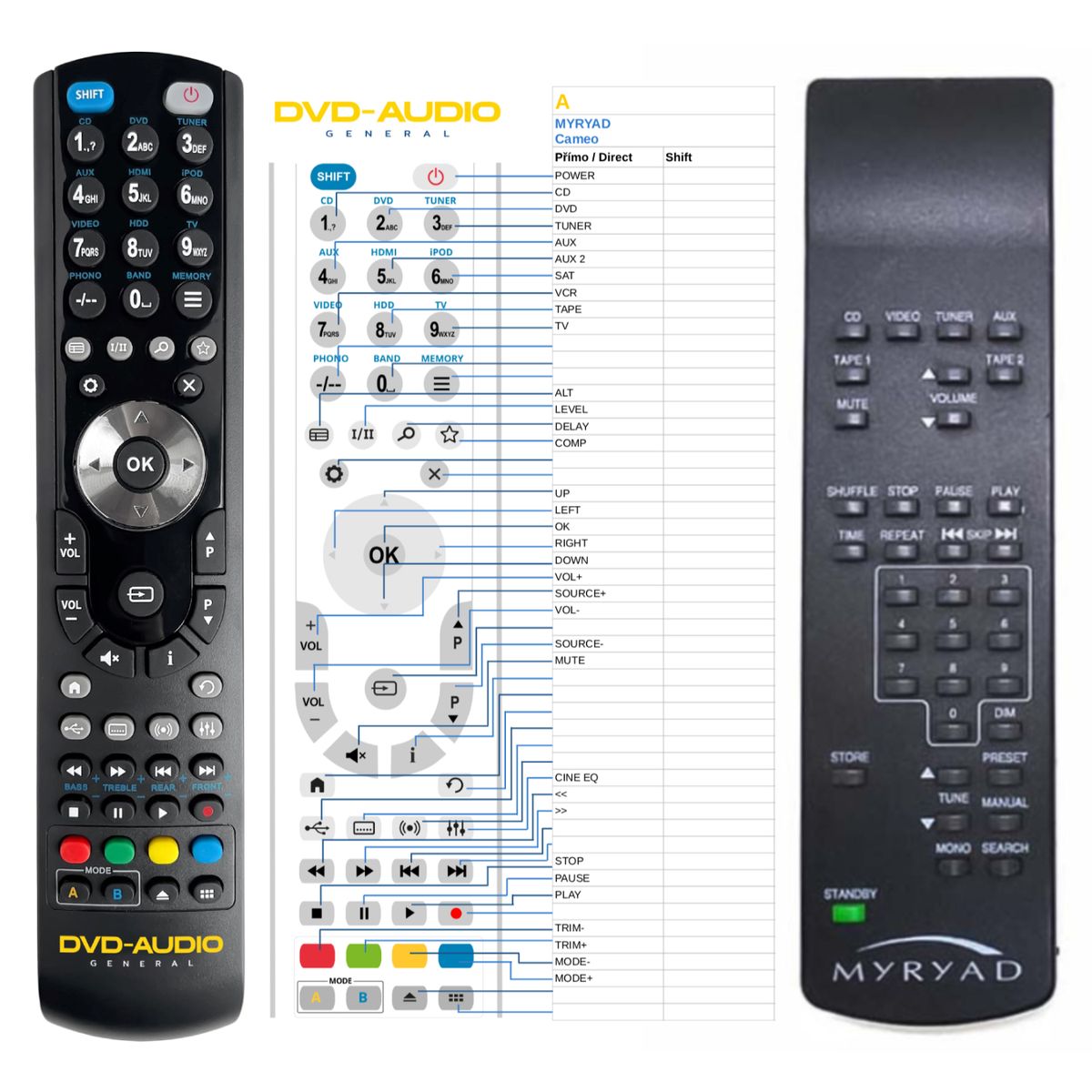 This remote control is available on branded remote control General DVD/AUDIO (shown on the left). We guarantee that the remote control will perform all the functions of the original RC.