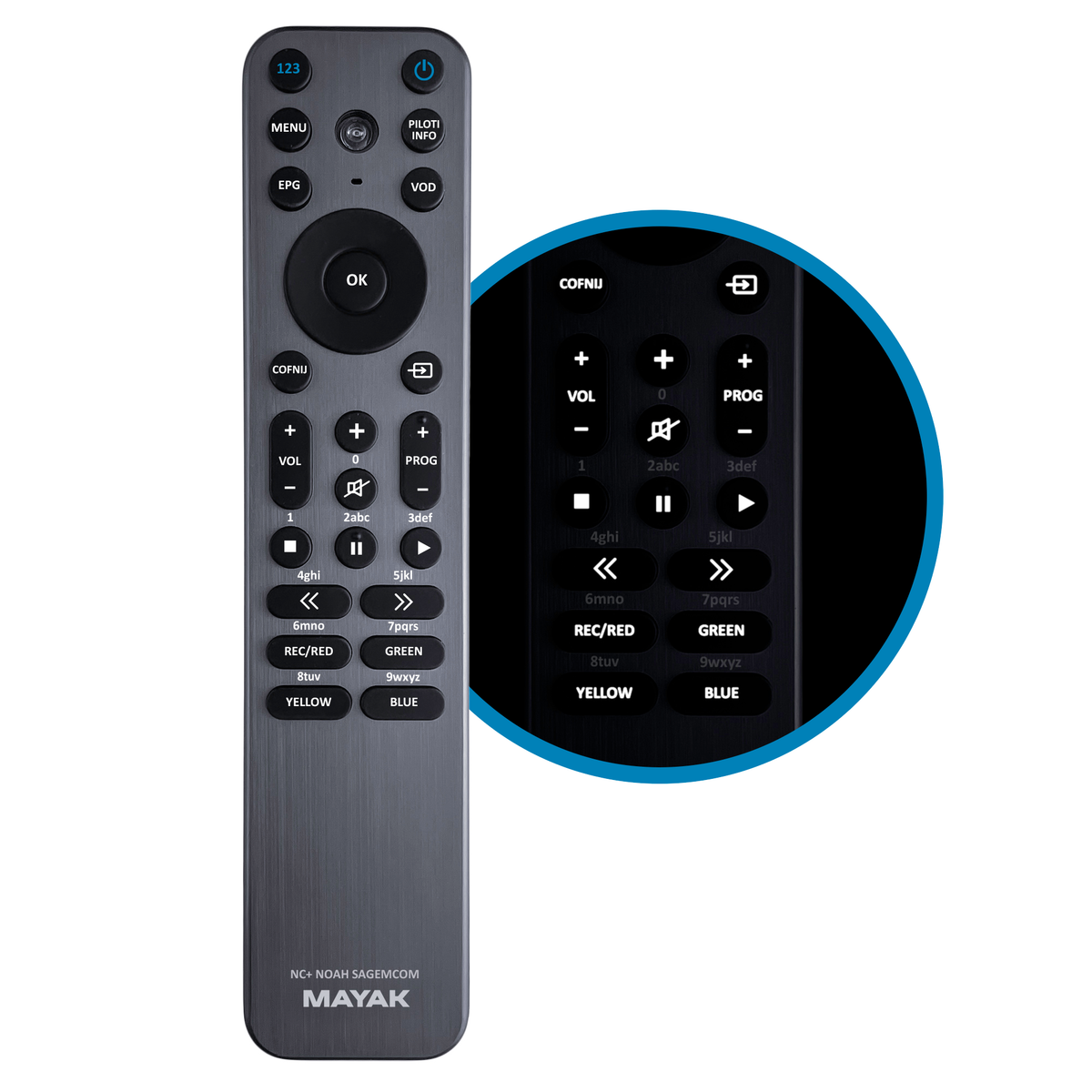 Remote control NC+ NOAH SAGEMCOM DSIW74, 4K ULTRABOX+, DSI83 HD, DSI87, ADB NCP-4740SF (NOAH SAGEMCOM DSIW74, 4K ULTRABOX+, DSI83 HD, DSI87, ADB NCP4740SF) – a luxurious, metal, and backlit duplicate 1:1 of the original remote control.