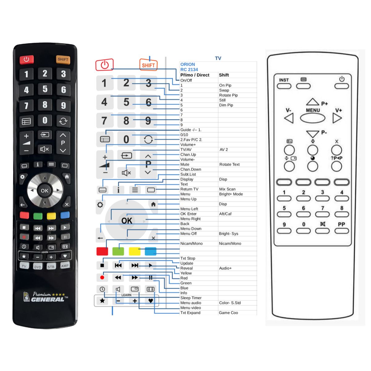 Deze afstandsbediening is beschikbaar op merkafstandsbediening General Premium (links afgebeeld). Wij garanderen dat de afstandsbediening alle functies van de originele afstandsbediening vervult.
