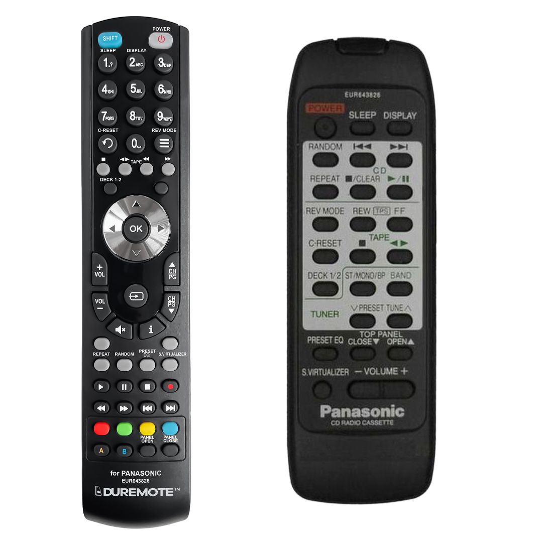 De PANASONIC EUR643826 afstandsbediening is een 1:1 duplicaat van het origineel.