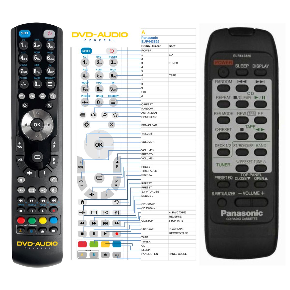 Deze afstandsbediening is beschikbaar op merkafstandsbediening General DVD/AUDIO (links afgebeeld). Wij garanderen dat de afstandsbediening alle functies van de originele afstandsbediening vervult.