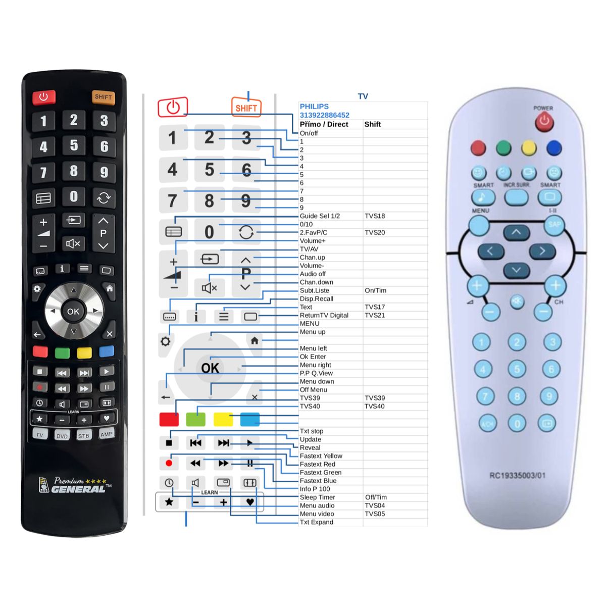 Vervangende afstandsbediening PHILIPS 313922886452, RC19335003/01 - 100% vervanging 1:1 van de originele afstandsbediening.