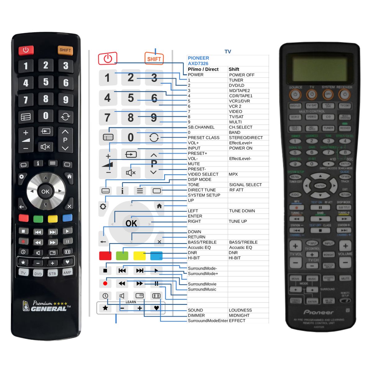 Deze afstandsbediening is beschikbaar op merkafstandsbediening General Premium (links afgebeeld). Wij garanderen dat de afstandsbediening alle functies van de originele afstandsbediening vervult.