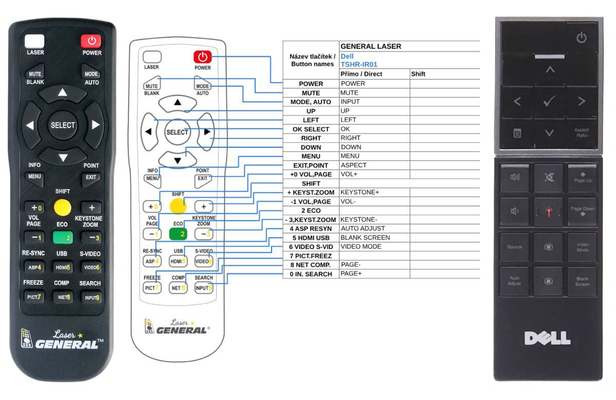 DELL 1209S, 1409X, 1609WX - afstandsbediening met laseraanwijzer