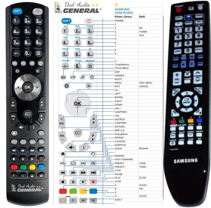Deze afstandsbediening is beschikbaar op merkafstandsbediening General DVD/AUDIO (links afgebeeld). Wij garanderen dat de afstandsbediening alle functies van de originele afstandsbediening vervult.