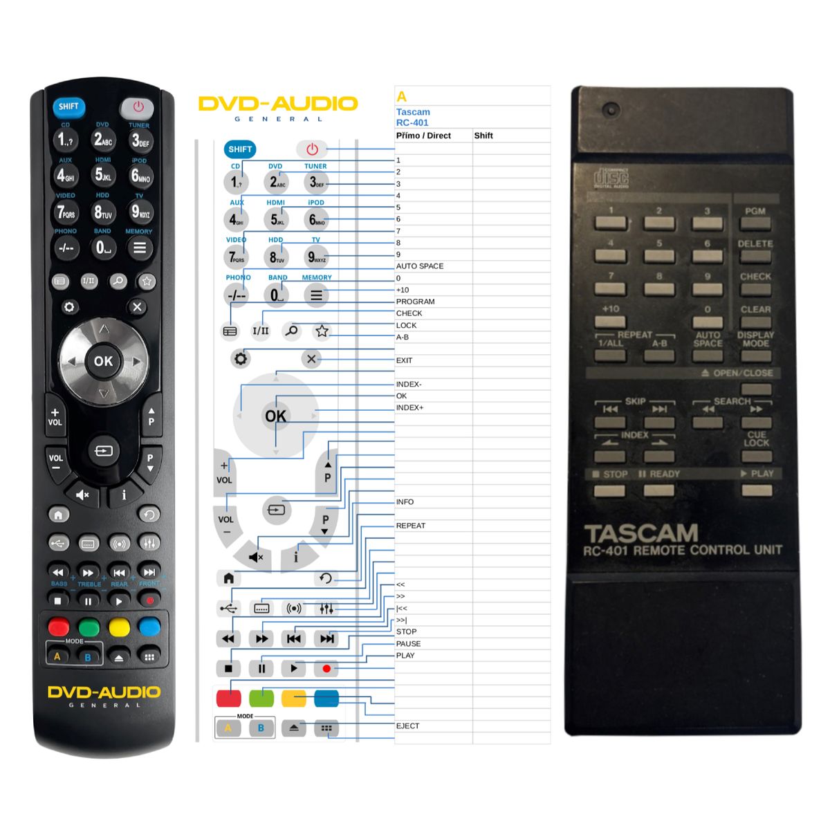 TASCAM RC-A500 - compatibele afstandsbediening van het merk General