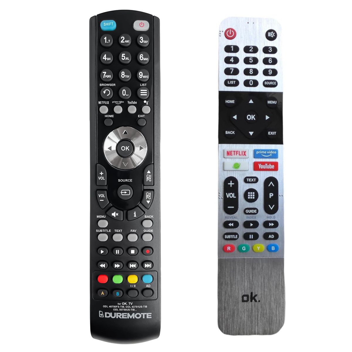 The OK. ODL 40750FS-TIB, ODL 43751US-TIB, ODL 50750US-TIB, ODL 50850US-TIB, ODL 55850US-TIB (ODL 40750FSTIB, ODL 43751USTIB, ODL 50750USTIB, ODL 50850USTIB, ODL 55850USTIB) remote control is a 1:1 duplicate of the original.