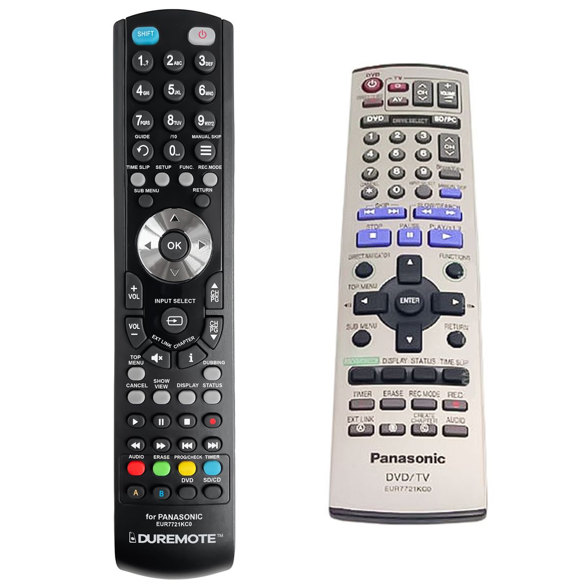The PANASONIC EUR7721KCO, EUR7721KC0 remote control is a 1:1 duplicate of the original.