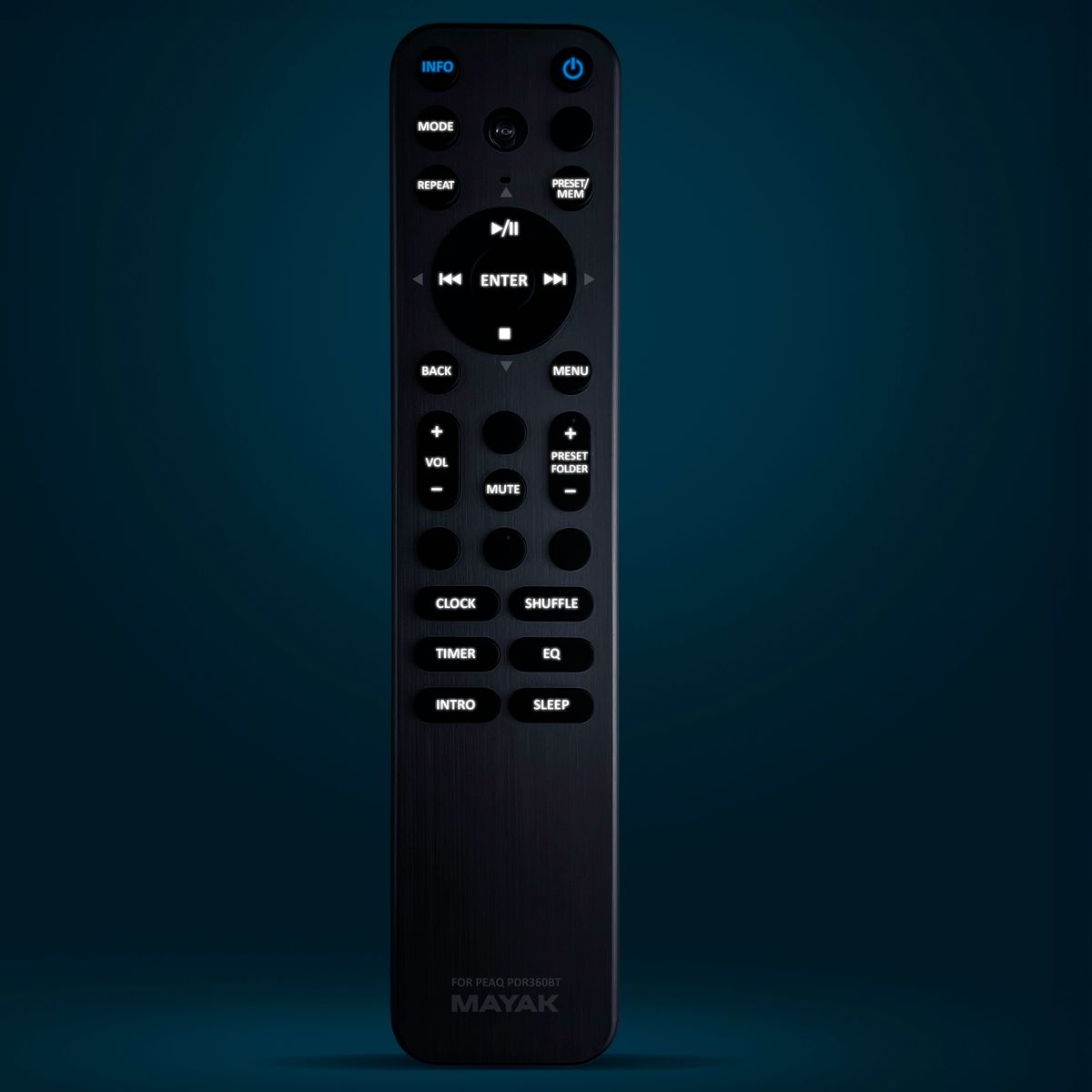 Remote control PEAQ PDR360BT-B (PDR360BTB) – a luxurious, metal, and backlit duplicate 1:1 of the original remote control.