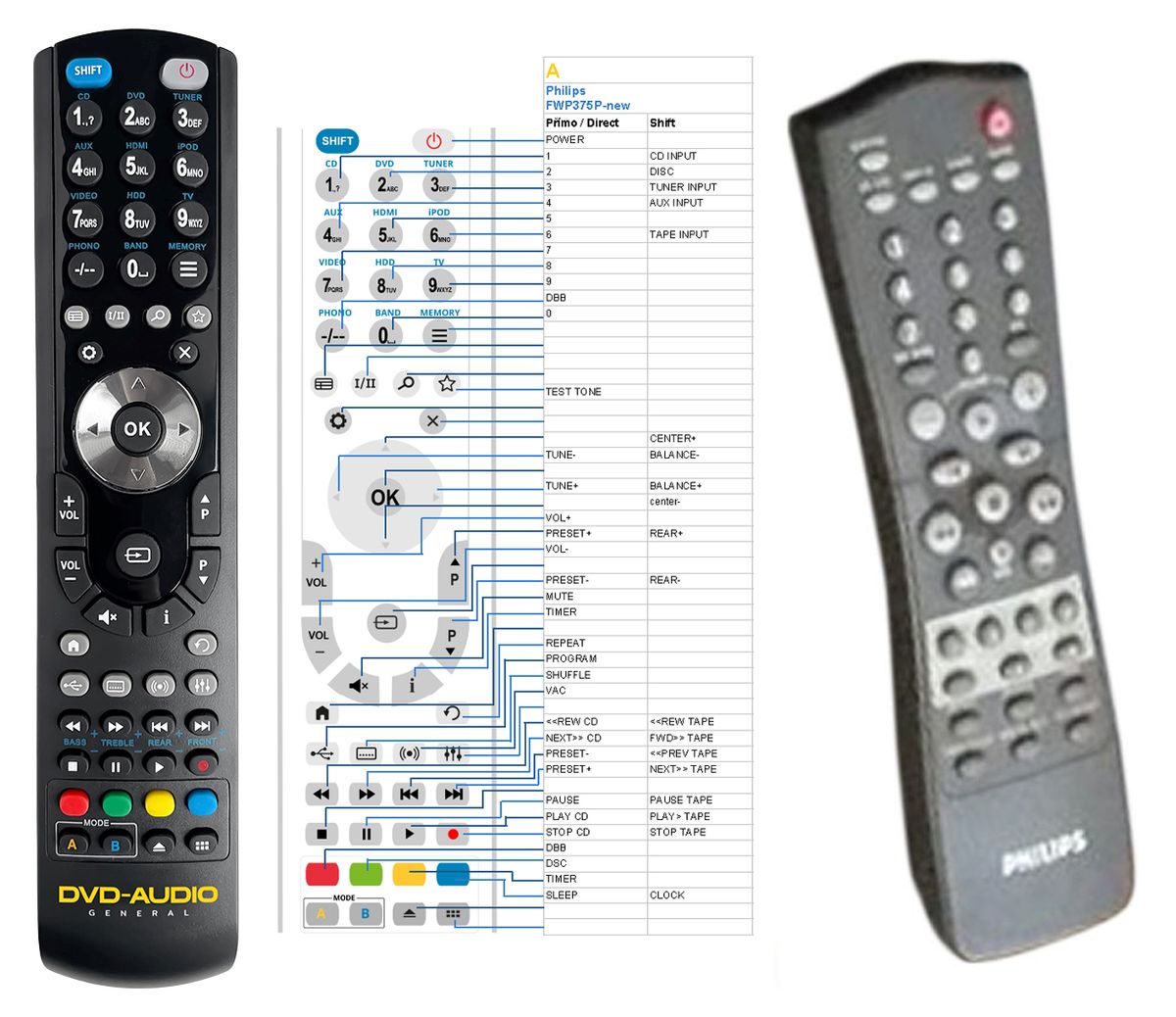 This remote control is available on branded remote control General DVD/AUDIO (shown on the left). We guarantee that the remote control will perform all the functions of the original RC.