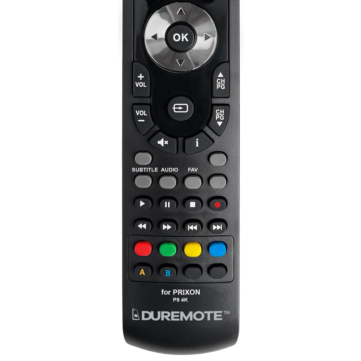 The PRIXON P9 4K, P7 remote control is a 1:1 duplicate of the original. Remote control General Duremote has exactly the same functions and the same button names as the original remote control. No setup needed, no... More information