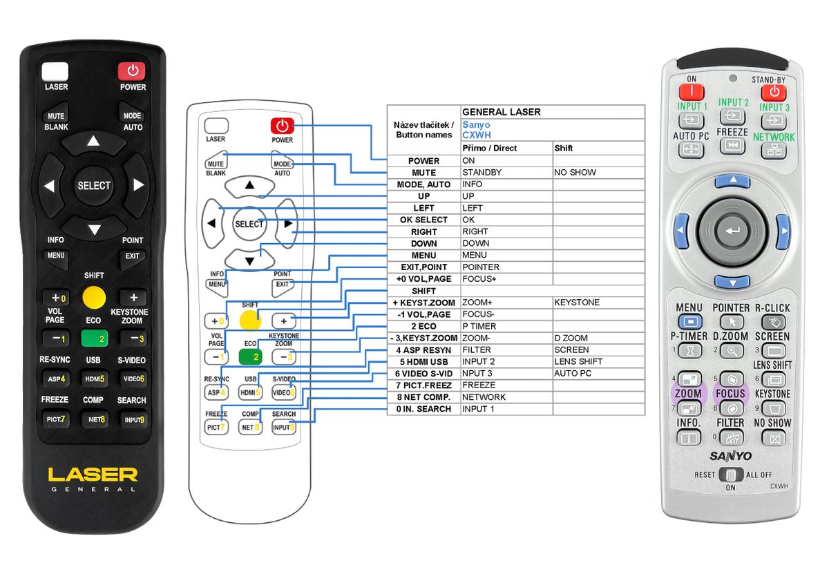Replacement remote control SANYO CXWH, PLC-XP100L (CXWH, PLCXP100L) - 100% replacement 1:1 of the original remote control.