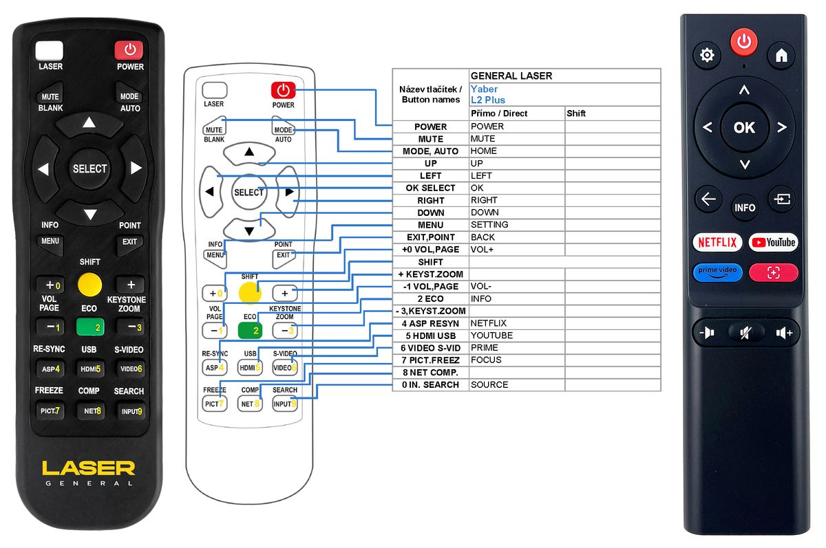In case that you will replace your projector with another brand/model in the future, we are be able to reprogram this remote control for absolutely any new device. The General LASER driver will survive your existing device!