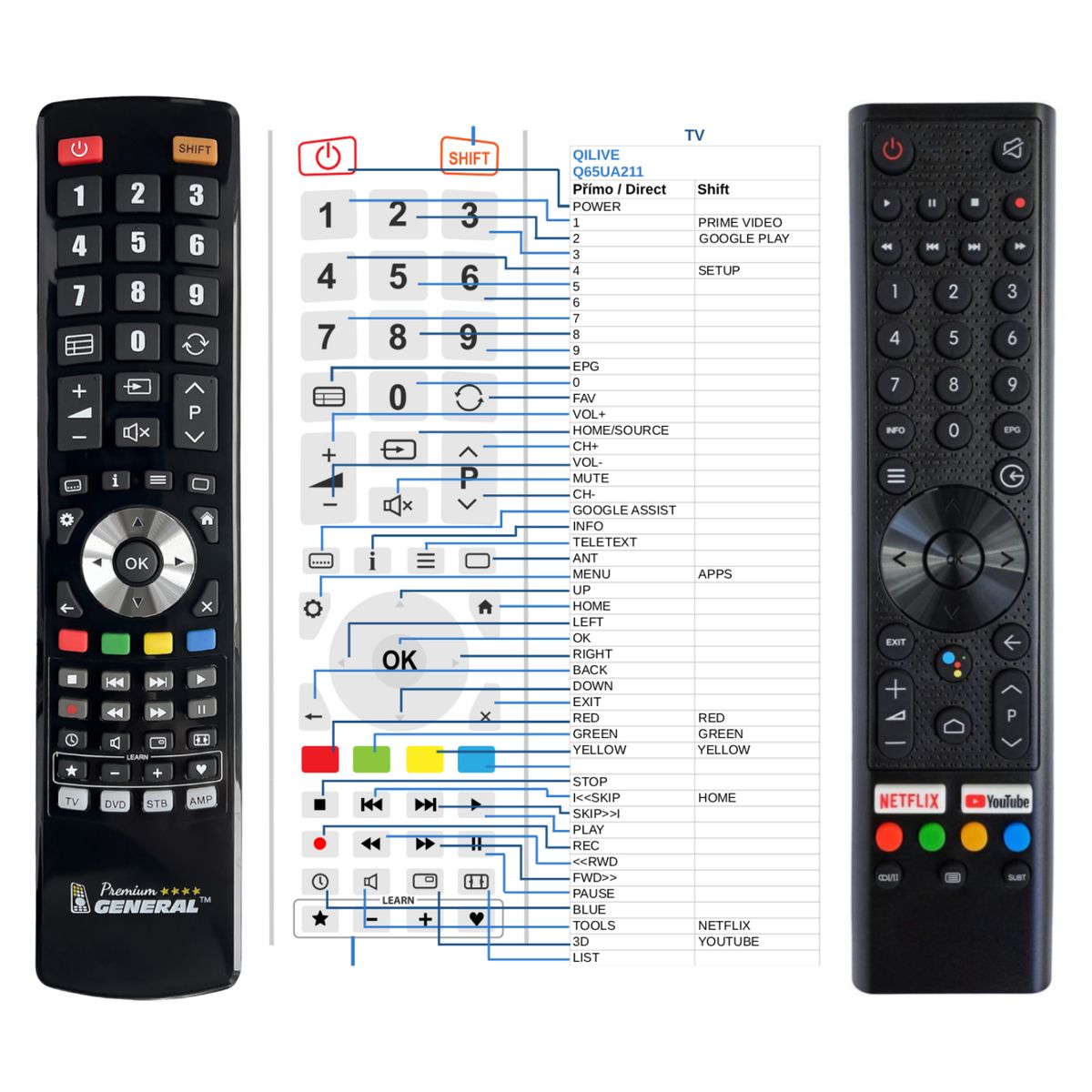 This remote control is available on branded remote control General Premium (shown on the left). We guarantee that the remote control will perform all the functions of the original RC.
