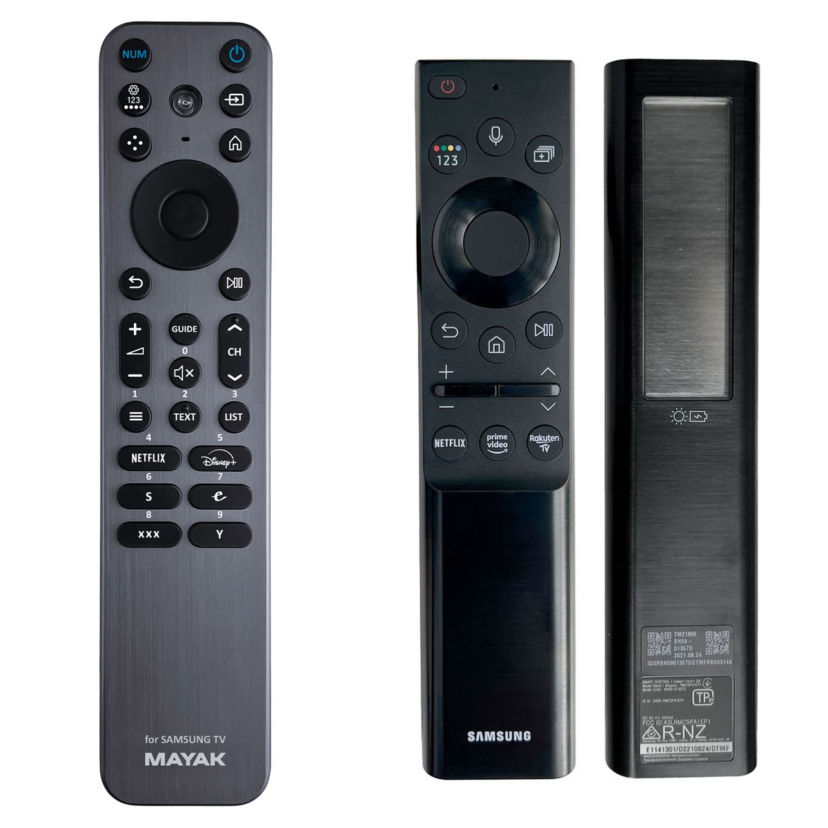 Premium replacement designed and manufactured by our company - has all the essential functions of the original remote for these models of brand SAMSUNG: QE43Q60AAUXXH, QE43Q67AA, QE43Q67AAUXXH, QE43QN90AAT, QE50Q65A, QE50Q80A, QE50Q80AAT, QE50Q80TAT, QE50QN90A, QE55LS03A, QE55Q65A, QE55Q70A, QE55Q80TATXXH, QE55QN700AT, QE55QN85A, QE55QN95A , QE65Q65A, QE65Q70A, QE65Q80AATXXH, QE65Q80TATXXH, QE65QN700AT, QE65QN85AAT, QE75Q65A, QE75Q80AATXXH, QE75Q95TATXXH, QE75QN700AT, QE75QN85AA, QE85Q80AAT, QE85Q95TATXXH, TM2180E. (There may not be listed all compatible models. If you are not sure, just tell us your device model (by online chat, email), we will promptly check, verify if compatible with your device. The verified compatibility is guaranteed by us.)