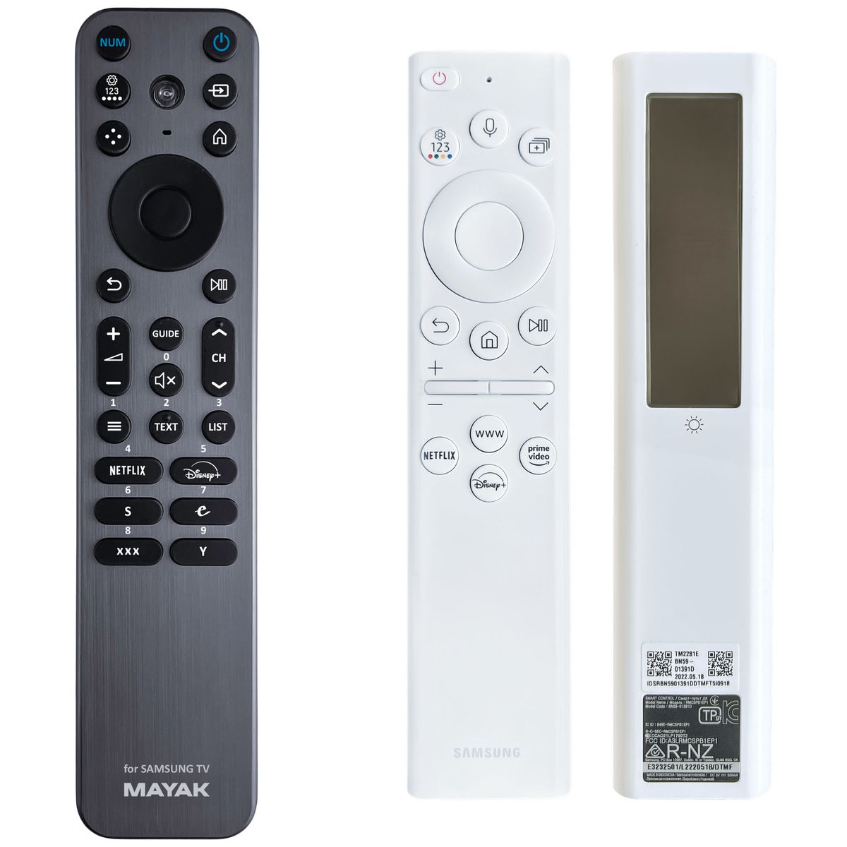 Premium replacement designed and manufactured by our company - has all the essential functions of the original remote for these models of brand SAMSUNG: QA55LS01BAKXXT , N43LS03AAFXZA, QA43LS01BAGXXP , QA43LS01BAKXXM, QA43LS01BAKXXS, QA43LS01BAKXXT, QA43LS01BAWXZW, QA43LS03BAJXZK, QA50LS01BAKXXM, QA50LS01BAKXXT , QA50LS01BAWXZW, QA50LS01BBKXXD, QA50LS03BAJXZK, QA50LS03BAKXXM , QA50LS03BAKXXT , QA50LS03BAWXZW , QA55LS01BAGXXP, QA55LS01BAKXXD , QA55LS01BAKXXM, QA55LS01BAKXXS, QA55LS03BAJXZK, QA65LS01BAKXXM, QA65LS01BAKXXT, QA65LS03BAJXZK, QA65LS03BAWXZW, QA75LS03BAJXZK, QA75LS03BAWXZW, QA85LS03BAKXXS, QE43LS01BGUXXH, QE43LS01BHUXXH, QE43LS03BAUXSQ, QE43LS03BGUXXH, QE50LS01BGUXXH, QE50LS01BHUXXH, QE50LS03BAUXSQ, QE50LS03BGUXXH, QE55LS01BAUXTK, QE55LS01BGUXXH, QE55LS03BAUXSQ, QE55LS03BAUXTK, QE55LS03BGUXXH, QE65LS03BAUXSQ, QE65LS03BAUXTK, QE65LS03BGUXXH, QE75LS03BAUXTK, QE75LS03BGUXXH, QE85LS03BAUXSQ, QE85LS03BAUXTK, QE85LS03BGUXXH, QN43LS01BAGXPE, QN43LS01BAPXPA, QN43LS03BAGXPE, QN43LS03BAGXZS, QN43LS03BAPXPA, QN43Q60AAFXZA, QN50LS01BAPXPA, QN50LS03AAFXZA, QN50LS03BAGXPE, QN50LS03BAGXZS, QN50LS03BAKXZL, QN50LS03BAPXPA, QN50Q60AAFXZA, QN50QN90AAFXZA, QN55LS01BAGXPE, QN55LS01BAKXZL, QN55LS01BAPXPA, QN55LS03AAFXZA, QN55LS03BAGXPE, QN55LS03BAGXUG, QN55LS03BAGXZS, QN55LS03BAKXZL, QN55LS03BAPXPA, QN55Q60AAFXZA, QN55Q70AAFXZA, QN55Q80AAFXZA, QN55QN85AAFXZA, QN55QN90AAFXZA, QN60Q60AAFXZA, QN65LS01BAPXPA, QN65LS03AAFXZA, QN65LS03BAGXPE, QN65LS03BAGXZS, QN65LS03BAKXZL, QN65LS03BAPXPA, QN65Q60AAFXZA, QN65Q70AAFXZA, QN65Q80AAFXZA, QN65QN800AFXZA, QN65QN85AAFXZA, QN65QN900AFXZA, QN65QN90AAFXZA, QN70Q60AAFXZA, QN75LS03BAGXZS, QN75LS03BAKXZL, QN85LS03BAGXZS, QN85LS03BAPXPA. (There may not be listed all compatible models. If you are not sure, just tell us your device model (by online chat, email), we will promptly check, verify if compatible with your device. The verified compatibility is guaranteed by us.)