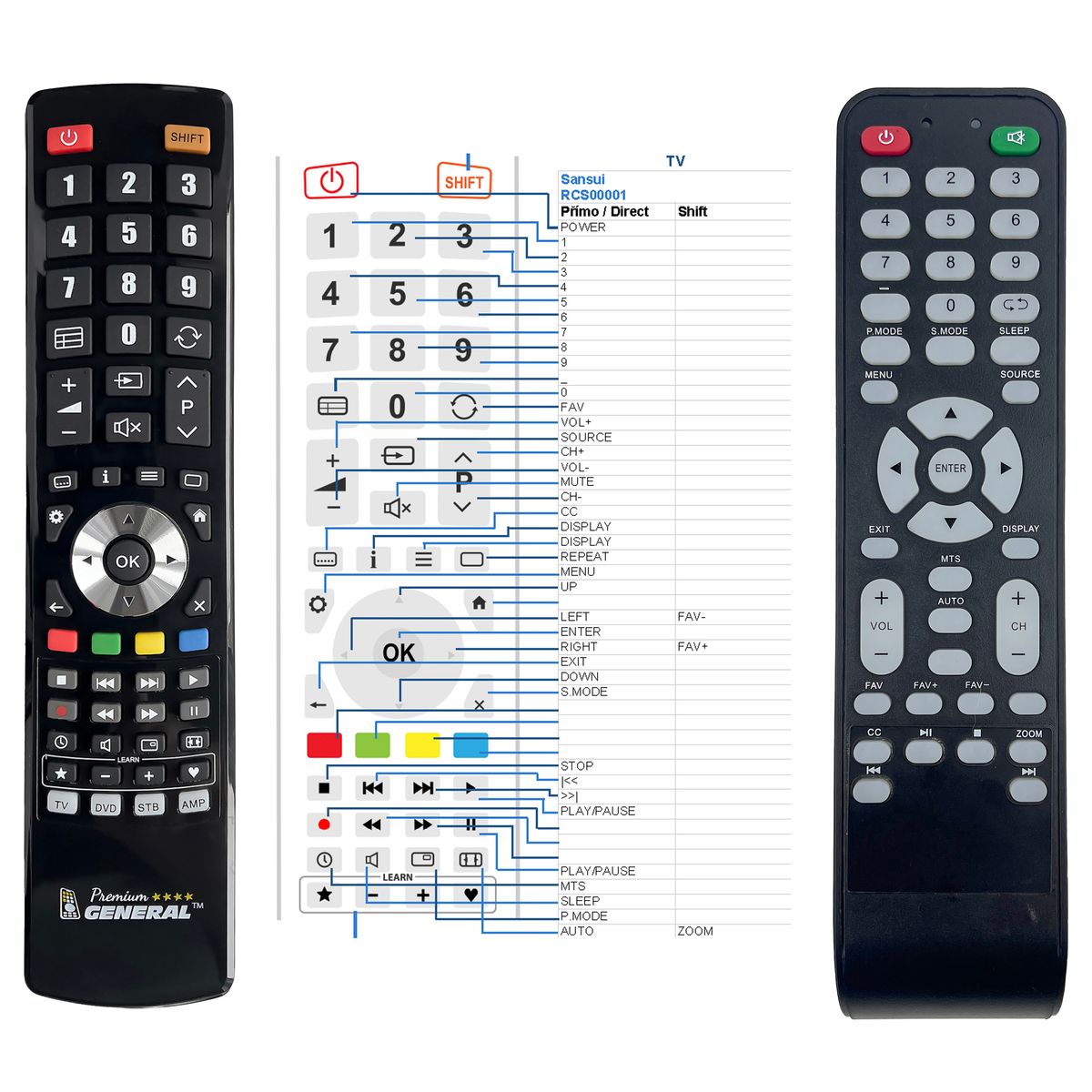 Replacement remote control SANSUI RCS00001 - 100% replacement 1:1 of the original remote control.