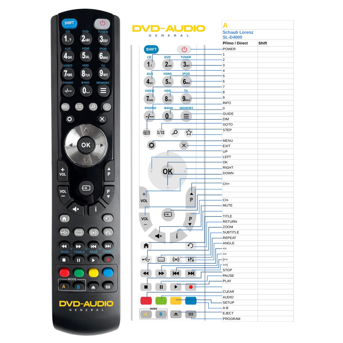 This remote control is available on branded remote control General DVD/AUDIO (shown on the left). We guarantee that the remote control will perform all the functions of the original RC.