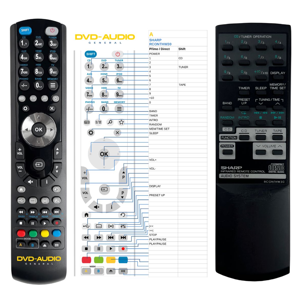 This remote control is available on branded remote control General DVD/AUDIO (shown on the left). We guarantee that the remote control will perform all the functions of the original RC.