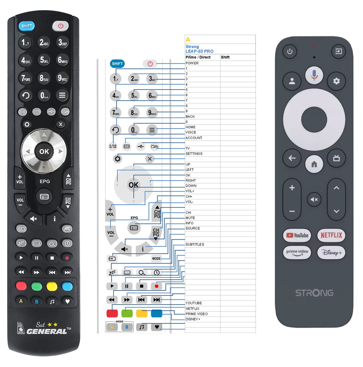 This remote control is available on branded remote control General SAT/TV (shown on the left). We guarantee that the remote control will perform all the functions of the original RC.