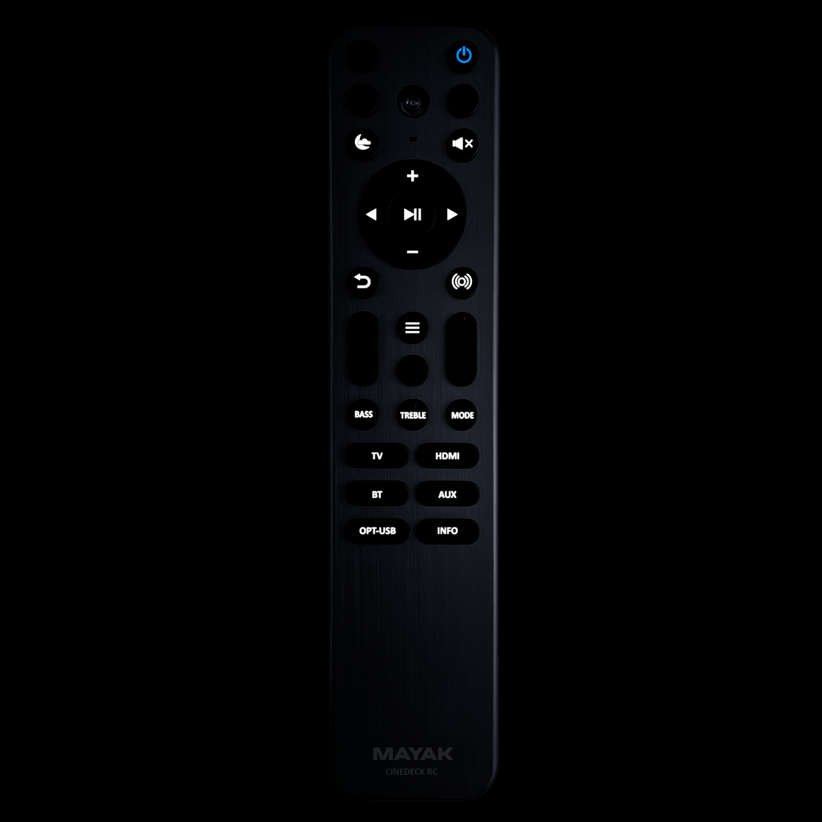 Remote control TEUFEL Cinedeck RC – a luxurious, metal, and backlit duplicate 1:1 of the original remote control.