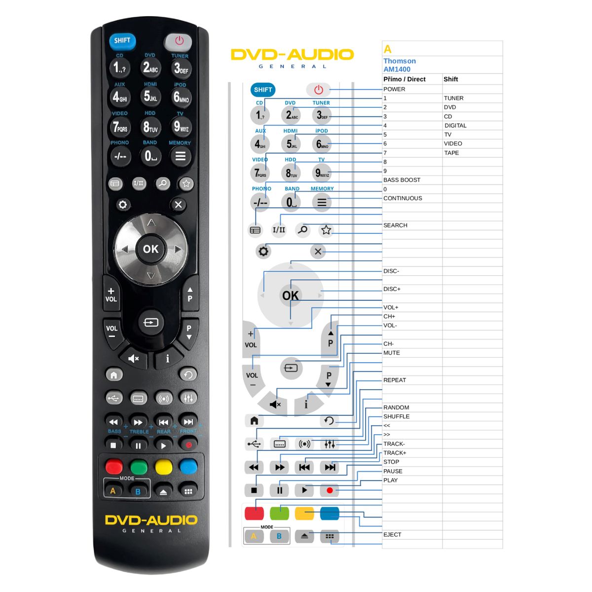 Replacement remote control THOMSON AM1400 - 100% replacement 1:1 of the original remote control.