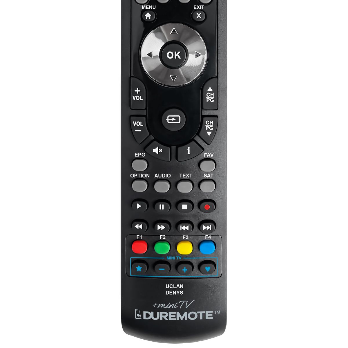 Remote control General duremote Mini-TV has exactly the same functions and the same button names as the original remote control. No setup needed, no codes needed, just insert batteries and it is ready to use with the models listed above.